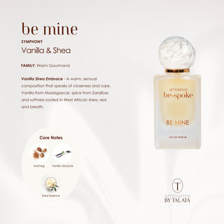 Originating from the heart of West Africa, "Be Mine" pays homage to the golden warmth and sumptuous creaminess of Shea Butter. The velvety touch of shea enfolds you, reminiscent of a tender embrace, while the subtle allure of vanilla whispers stories of faraway places. Anchoring these fragrances, the enduring warmth of sandalwood serves as a tribute to timeless traditions and enduring beauty.